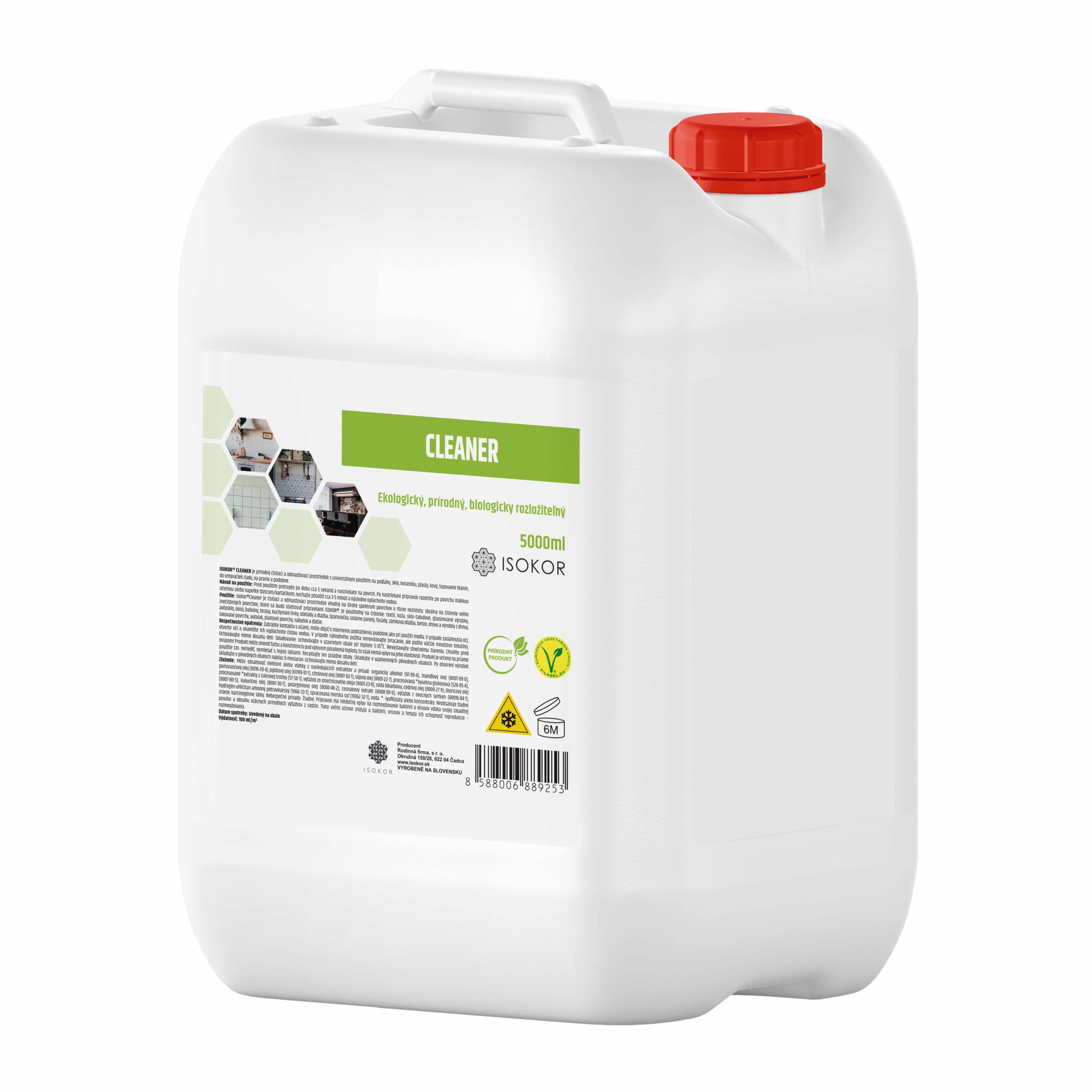 Az Isokor Cleaner természetes tisztítószer rendkívül hatékony a zsír és a makacs szennyeződések eltávolításában, emellett nagyon sokoldalú és pozitív hatással van az emberi bőrre. Az Isokor Cleaner univerzális természetes tisztítószer otthon és a kertben egyaránt használható. Hatékonyan tisztítja például a kerti medence tömlőit, és használat után közvetlenül a kertbe önthető. Növényekre és emlősökre ártalmatlan.