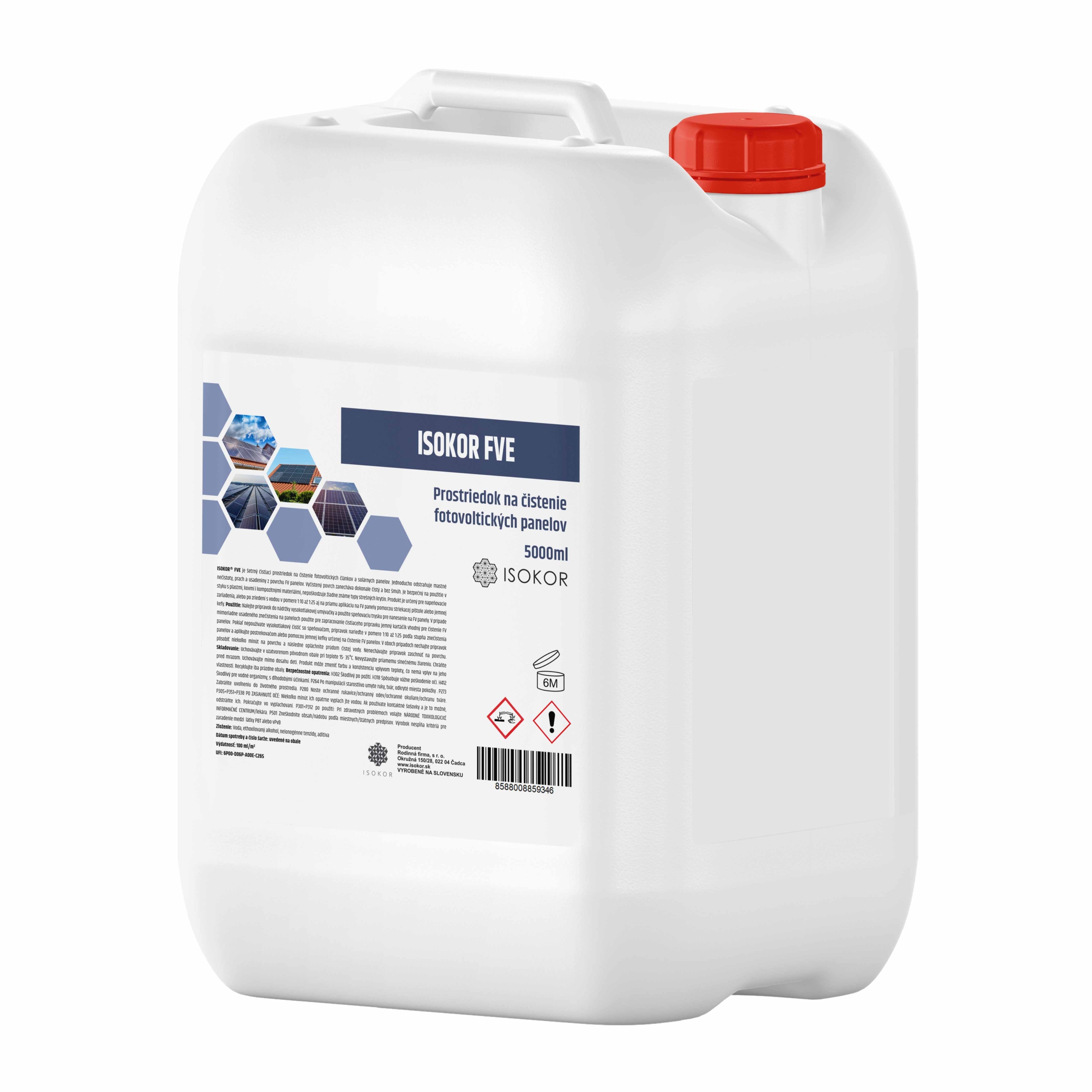 Öntse a tömény terméket egy nagynyomású mosó tartályába, és a habképző fúvókával vigyd fel a napelemekre. A paneleken lévő különösen makacs szennyeződések esetén a tisztítószer bedolgozásához használjon napelemek tisztítására alkalmas puha kefét. Egy panel körülbelül 10 ml Isokor FVE-t használ fel.