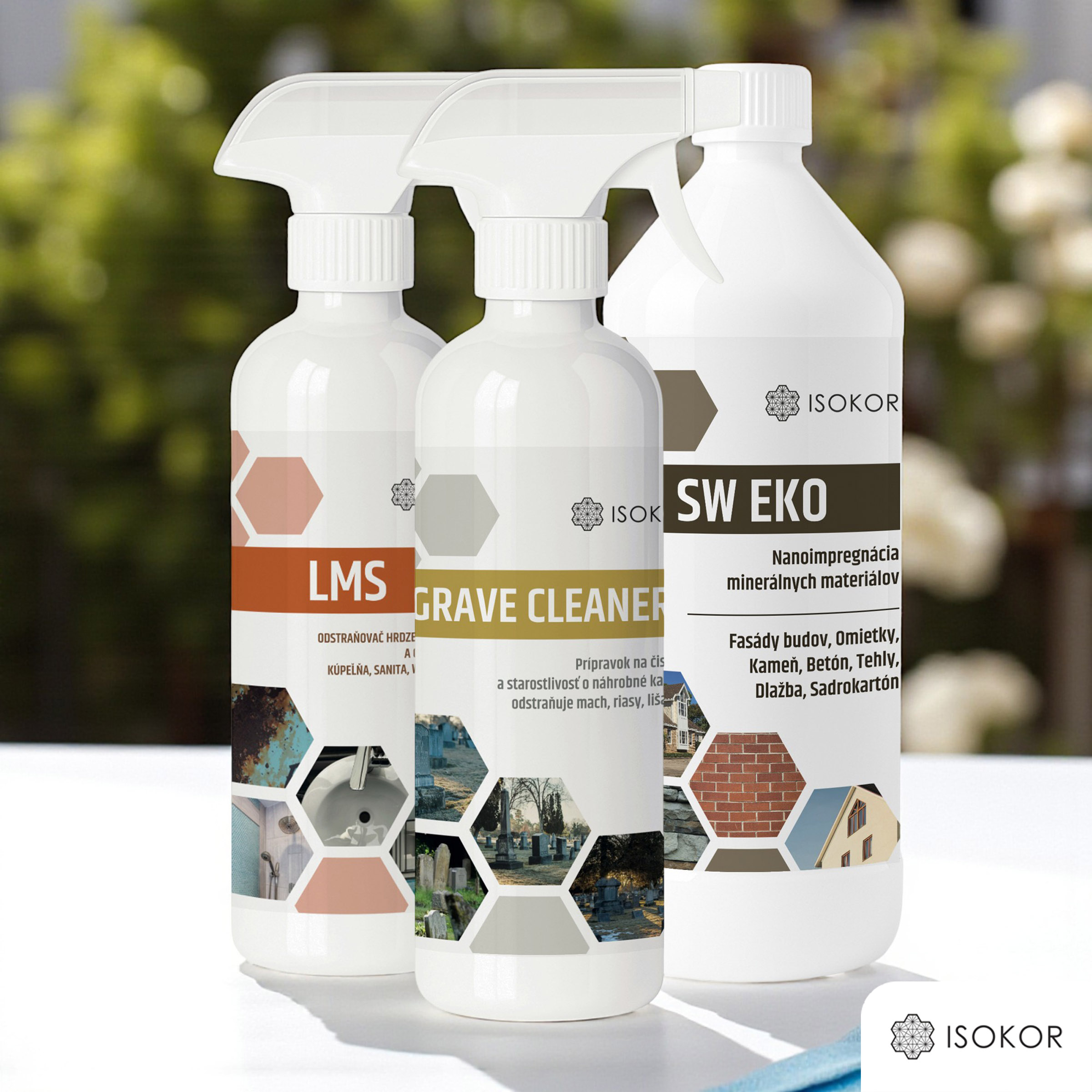 A készlet tartalmazza az Isokor Grave Cleaner tisztítószert és az Isokor SW EKO nanotechnológiás impregnálást, amely matt kőből készült sírkövek tisztítására és impregnálására szolgál.